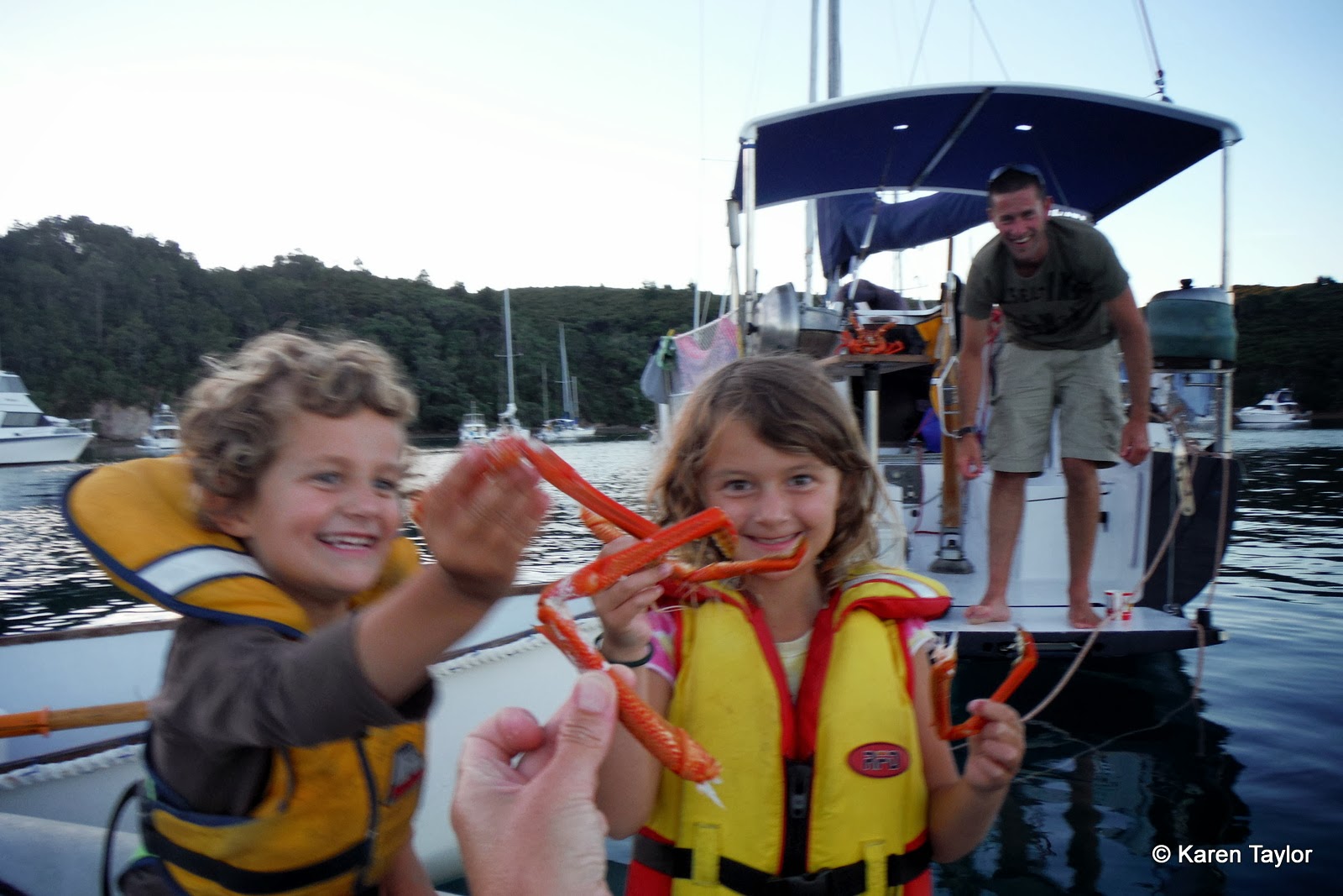We explored around Whangaparapara and had a great time snorkelling, and even watching a couple of dolphins rubbing on the anchor warp of a neighbouring yacht. We caught up with our friend Dougal and his friend Jock who was always saying "I'm SO excited!" .... We even enjoyed another lovely smoked fish meal!