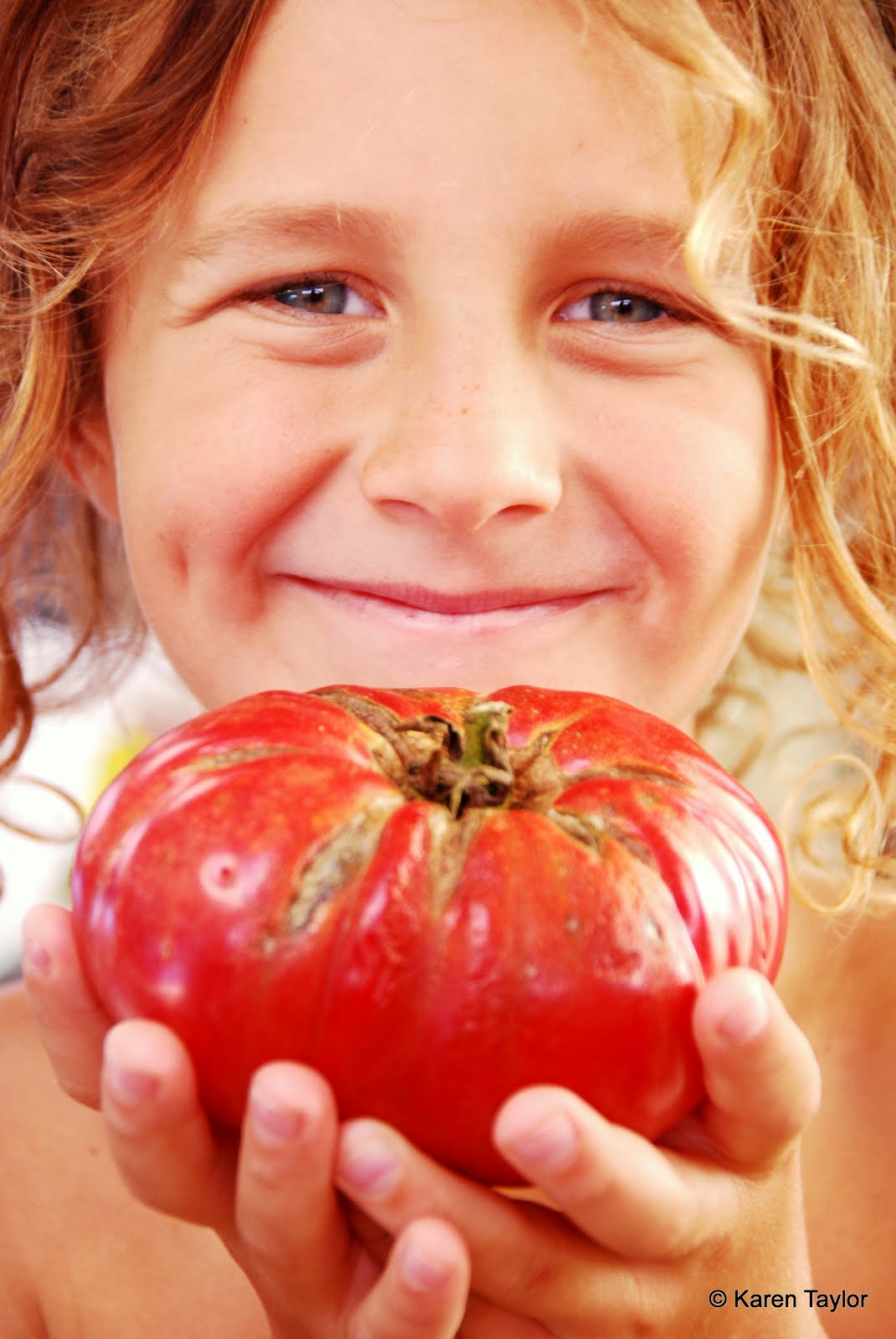 Blake with his enormous tomato that was home grown from one of our friends...